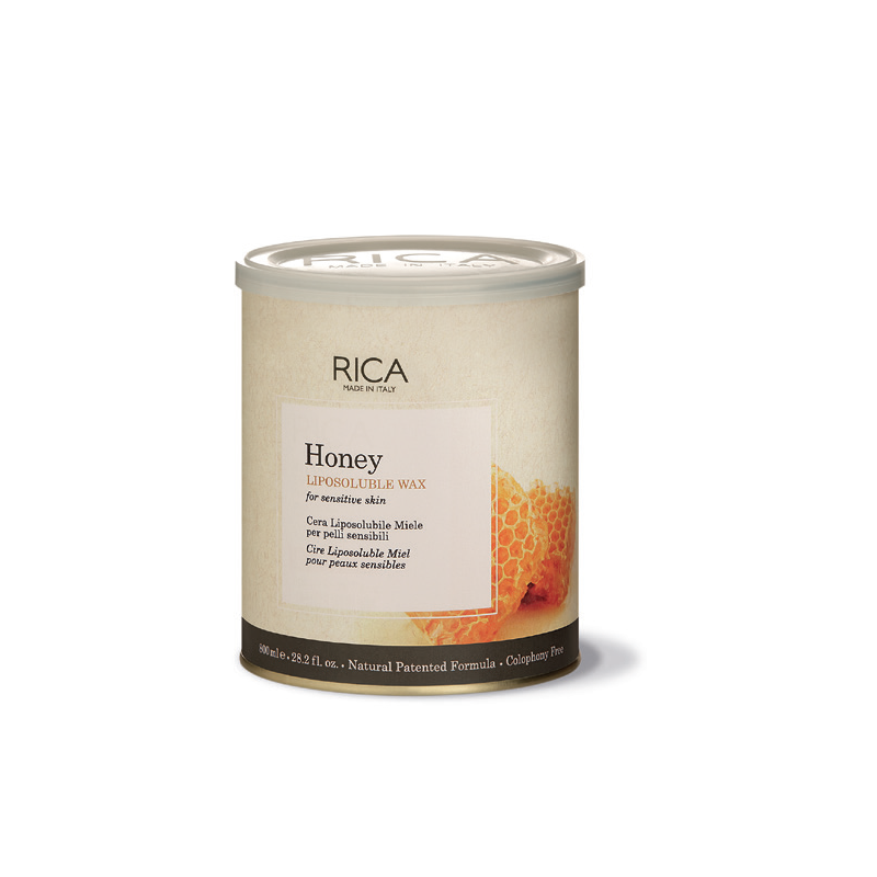 Cera liposolubile per depilazione arricchita con oli vegetali e cera d’api per una consistenza simile al miele.