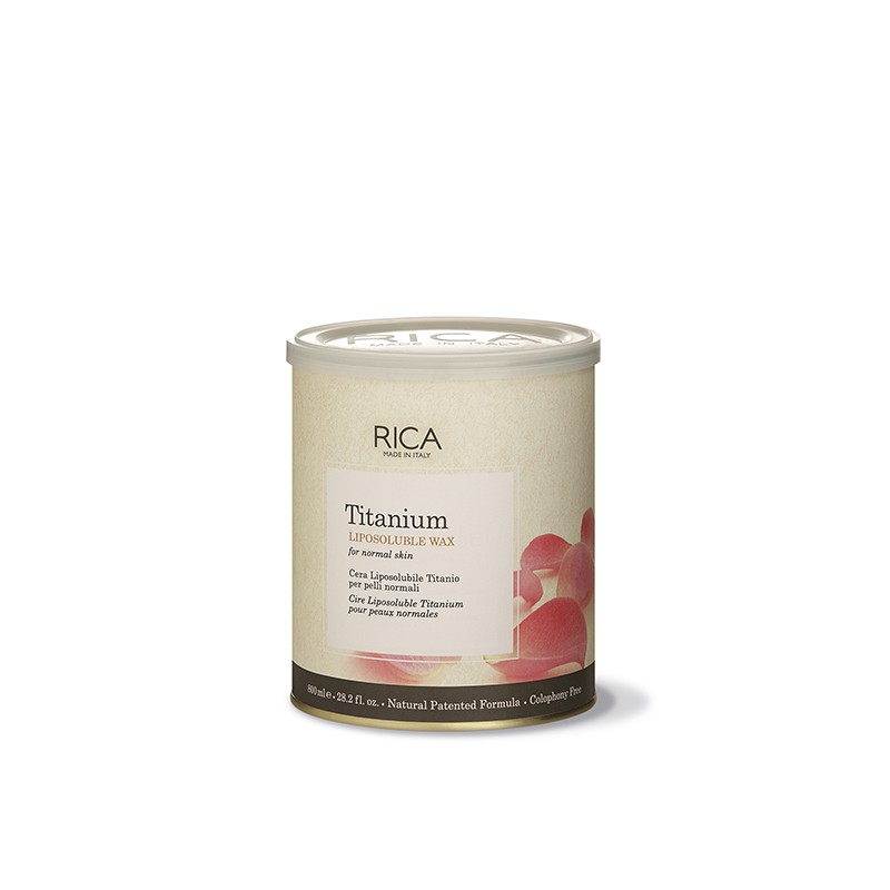 Cera liposolubile per depilazione arricchita con biossido di titanio caratterizzata da una consistenza cremosa e delicata con una presa superiore.