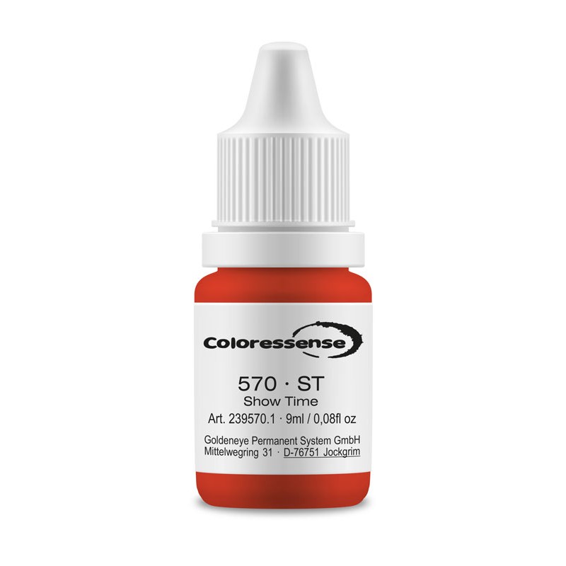 Show Time è un pigmento da trucco permanente/micropigmentazione dal colore brillante ma non così acceso e appariscente come sembra nella confezione. La freschezza elegante di questo colore rende brillanti e giovanili le labbra naturali beige-marroncine. Il risultato ottenuto è particolarmente apprezzato da quelle clienti a cui piace utilizzare rossetti rosa o color fragola. ST non è abbastanza intenso per quelle clienti che desiderano sostituire un rossetto rosso.