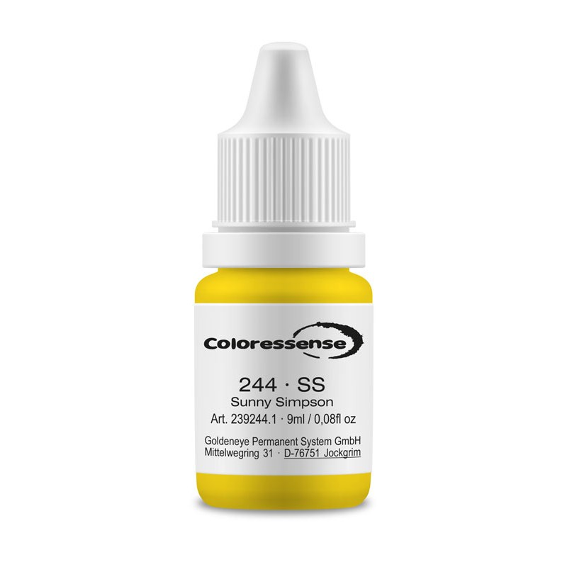 Sunny Simpson è un pigmento da trucco permanente/micropigmentazione di Goldeneye dal tono giallo brillante per creare effetti dorati sulle sopracciglia con la tecnica 3D. Se miscelato aggiunge un riflesso olivastro ai toni marroni scuri e un riflesso dorato ai toni chiari.