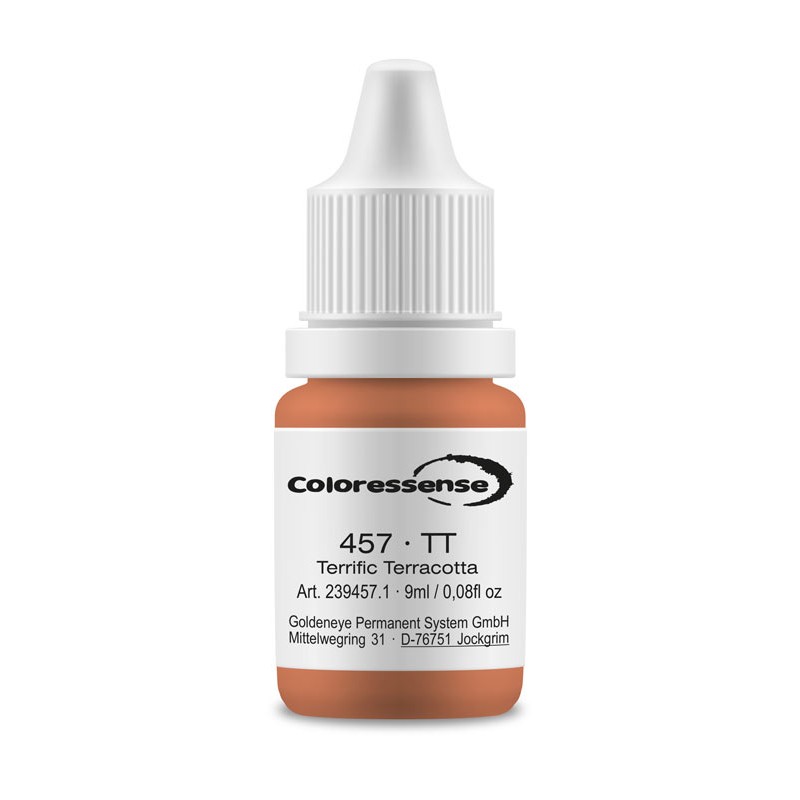 Terrific Terracotta è un pigmento da trucco permanente/micropigmentazione Goldeneye dal tono terracotta/marrone arancio, ideale per quelle donne che desiderano un contorno visibile color terra o un tono opaco. Adatto per correggere labbra naturali bluastre, riportandole a una tonalità marrone. TT è il colore di contorno ideale se si usano rossetti caldi.