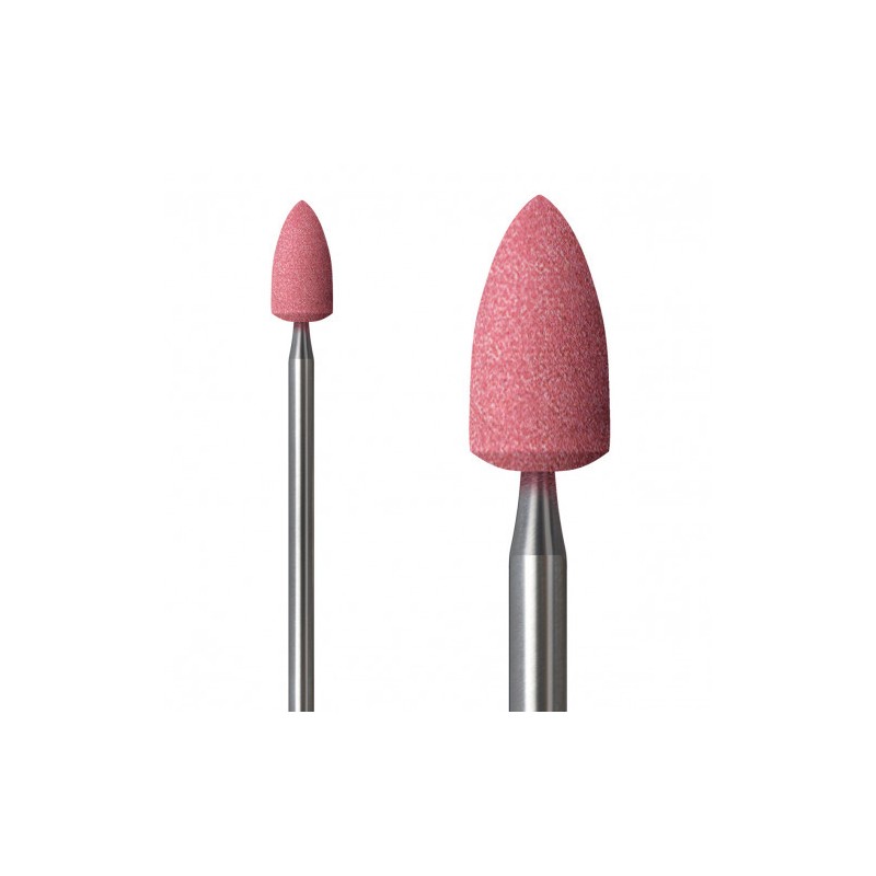 Con asta in acciaio inox, superficie abrasiva in carburo di silicio e forma conica a punta.