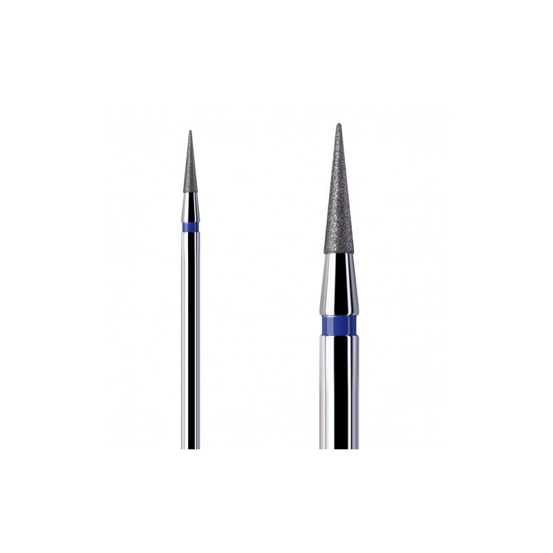Punta fresa professionale bidirezionale per micromotore in acciaio inox con superficie diamantata e forma a punta.