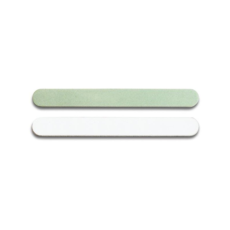 Lima lucidante per unghie brillanti. Limare l’unghia con la parte colorata, quindi lucidare con la parte bianca.