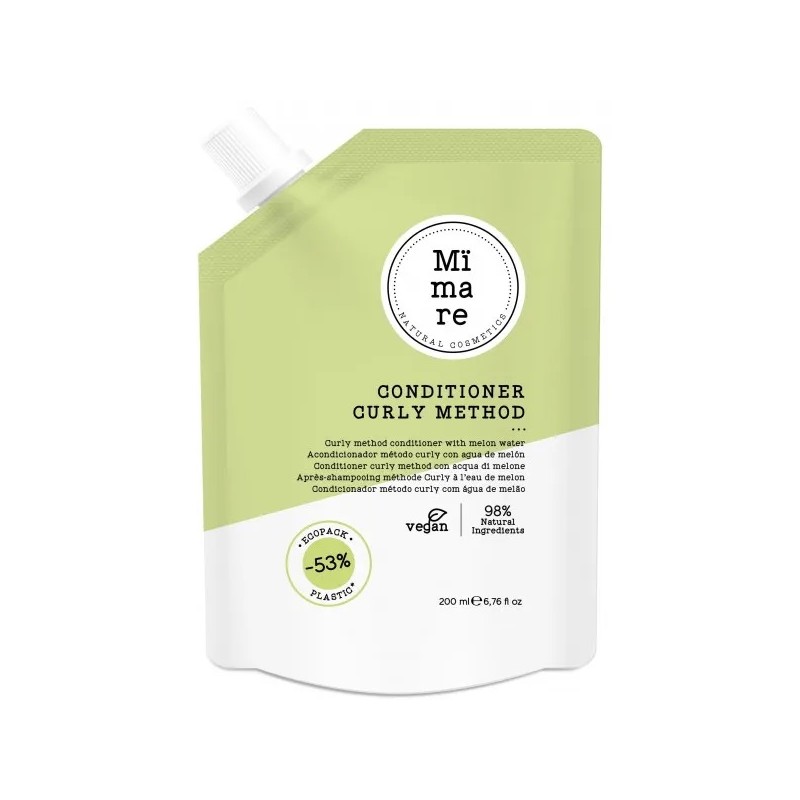 Balsamo per capelli ricci formulato con acqua di melone: districa istantaneamente i capelli, lasciandoli morbidi e brillanti.