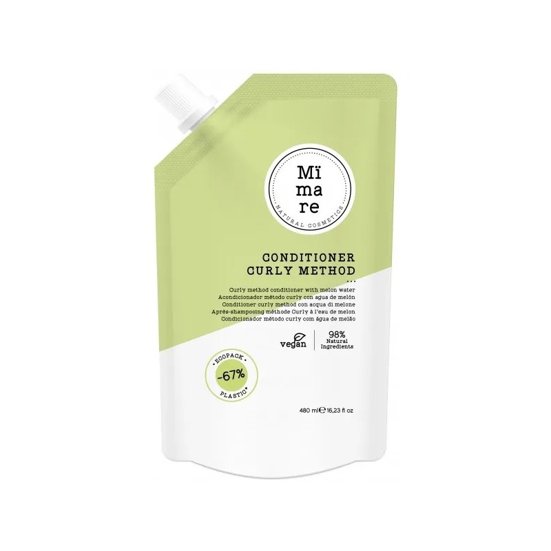 Balsamo per capelli ricci formulato con acqua di melone: districa istantaneamente i capelli, lasciandoli morbidi e brillanti.