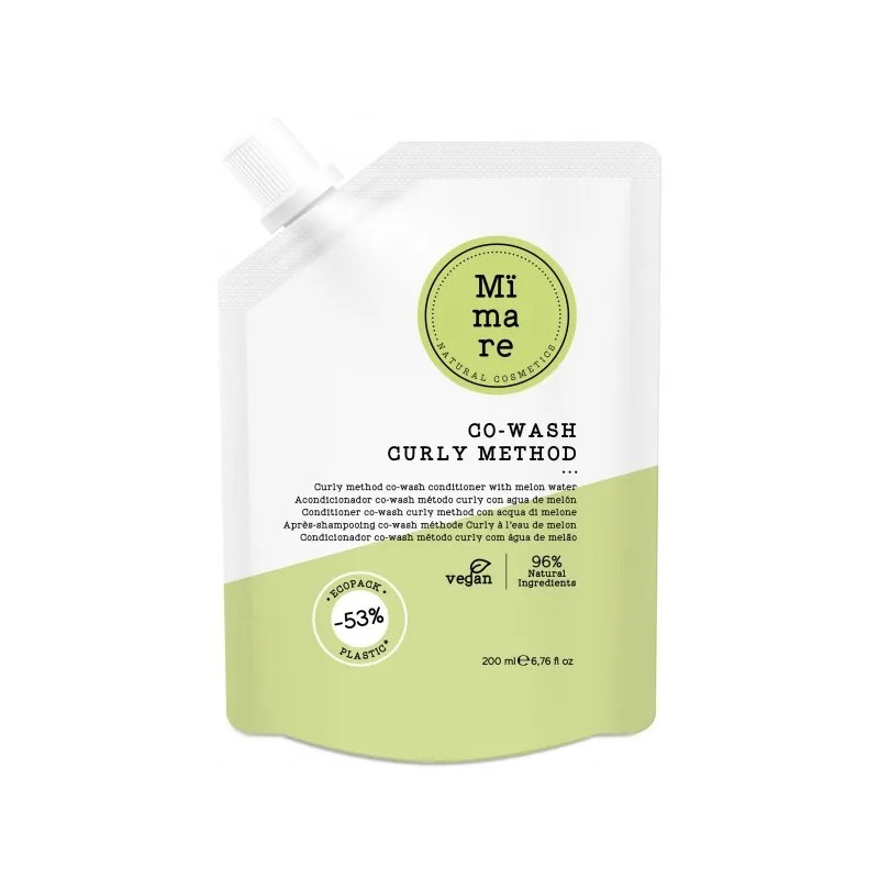 Co-wash per capelli ricci formulato con acqua di melone: deterge e ammorbisce i capelli e il cuoio capelluto.