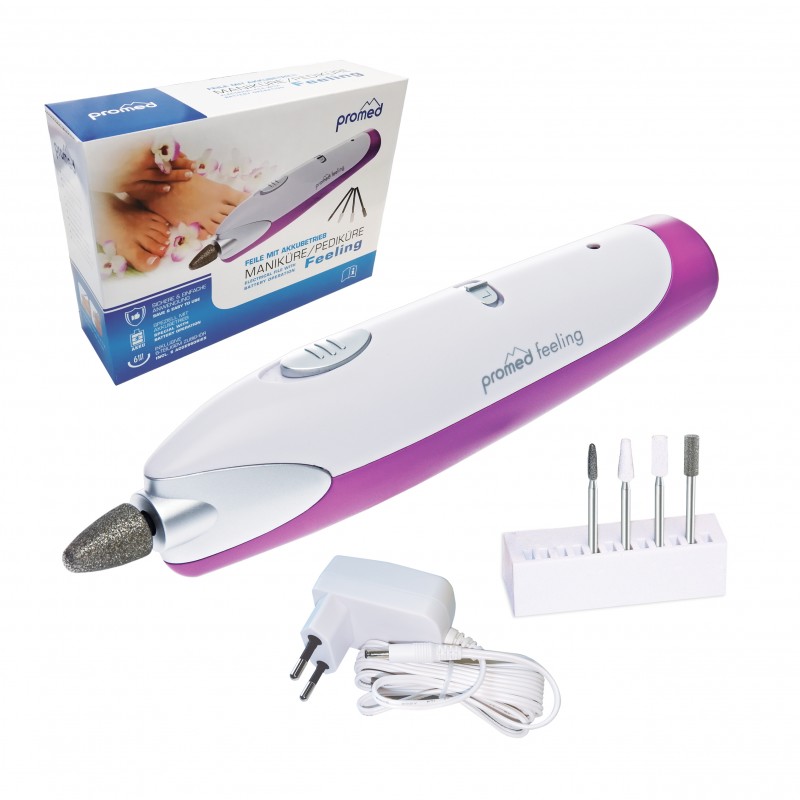 Micromotore Feeling con funzionamento a batteria. Ideale per accorciare e dare forma alle unghie, riparare unghie (artificiali) incarnite, rimuovere con assoluta semplicità cuticole e ispessimenti della pelle.