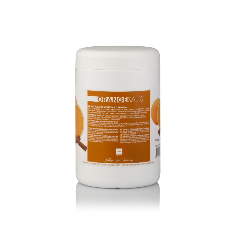 Sali da bagno arricchiti con oli essenziali di arancia e cannella.
