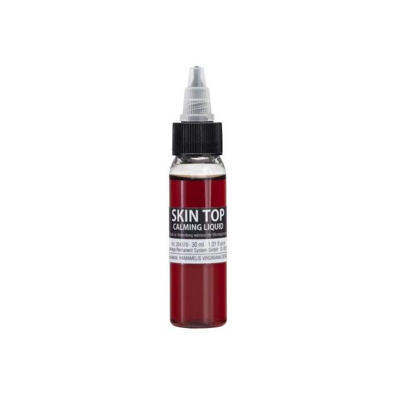 Skin Top è un elisir che grazie all'elevata percentuale di estratto di amamelide, può avere un effetto positivo sulla guarigione delle ferite. Applicato goccia a goccia sull'area pigmentata, lo Skin Top Calming Liquid può fermare qualsiasi sanguinamento, calmare il flusso linfatico e quindi facilitare il processo di trattamento.